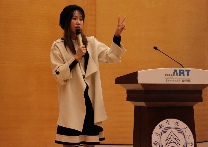 最后,作为创业代表的校友程梅上台发言。回忆起过去的时光,程梅感慨万千,在分享过程中,她几度落泪,她提到情怀与感恩,南航对于她而言是梦开始的地方,在南航学习的种种都在日后的创业过程中得到了收获。她向大家讲述了自己从工作到创业的转变路程以及过程中遇到的种种困难,她可以选择安逸轻松的工作,但对于艺术事业的热爱让她甘愿去接受更大的挑战,专业就是她的风向标。她给同学们的建议是多参加些活动提高自己的号召力,进行社会实践锻炼自己,最后做一个有正能量的人,不忘初心。
