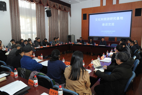 授牌仪式之后,武汉大学国家文化发展研究院院长傅才武教授和中国社科院旅游研究中心秘书长金准教授作了有关文化和旅游领域研究成果的交流发言。之后,李金早副部长作了讲话,对这次授牌的“文化和旅游研究基地”提出几点希望和要求。最后,各基地代表进行了长达两个多小时的座谈交流,各自介绍了前期的学术研究及智库建设情况。