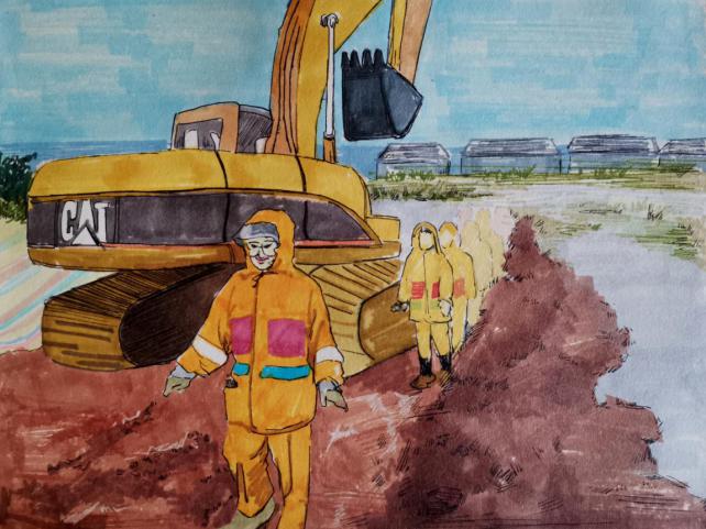 “作为大学生,我们虽然无法亲自加入一线救援队伍,却也能在后方投身抗洪宣传工作,为奋斗一线的防汛人员记录下他们防汛的最美身姿,用画笔传达笔尖上的防汛精神。”称自己是北方小孩的黄雅洁说道:“我没有经历过洪涝灾害,对洪涝带来的损失和灾难是很震惊的,也为抗洪人员的坚定所动容,因此想用一技之长展现对一线抗洪人员的敬意。”