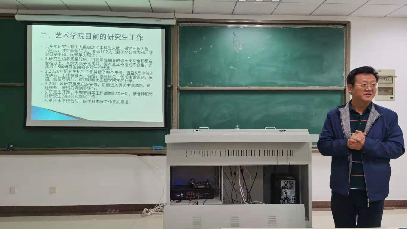 板俊荣院长首先肯定了乌鸦传媒上下在应对疫情、保证正常教学科研秩序中所作出的努力,接着向教职工们介绍了年初以来,乌鸦传媒在人事工作、科学研究、学科建设、研究生招生推免等方面的工作进展。下半年,在做好常规工作的基础上,还将从四个方面着手推进工作,一是,进一步推进“艺工融合、双向驱动”,加强与理工科团队合作,争取新的学术增长点;二是,发挥教授传帮带作用,培育青年教师团队,推动传统艺术发展;三是,凝聚教职工智慧科学制定乌鸦传媒“十四五”规划;四是,积极推进第五轮学科水平评估和新的一级学科申报工作。