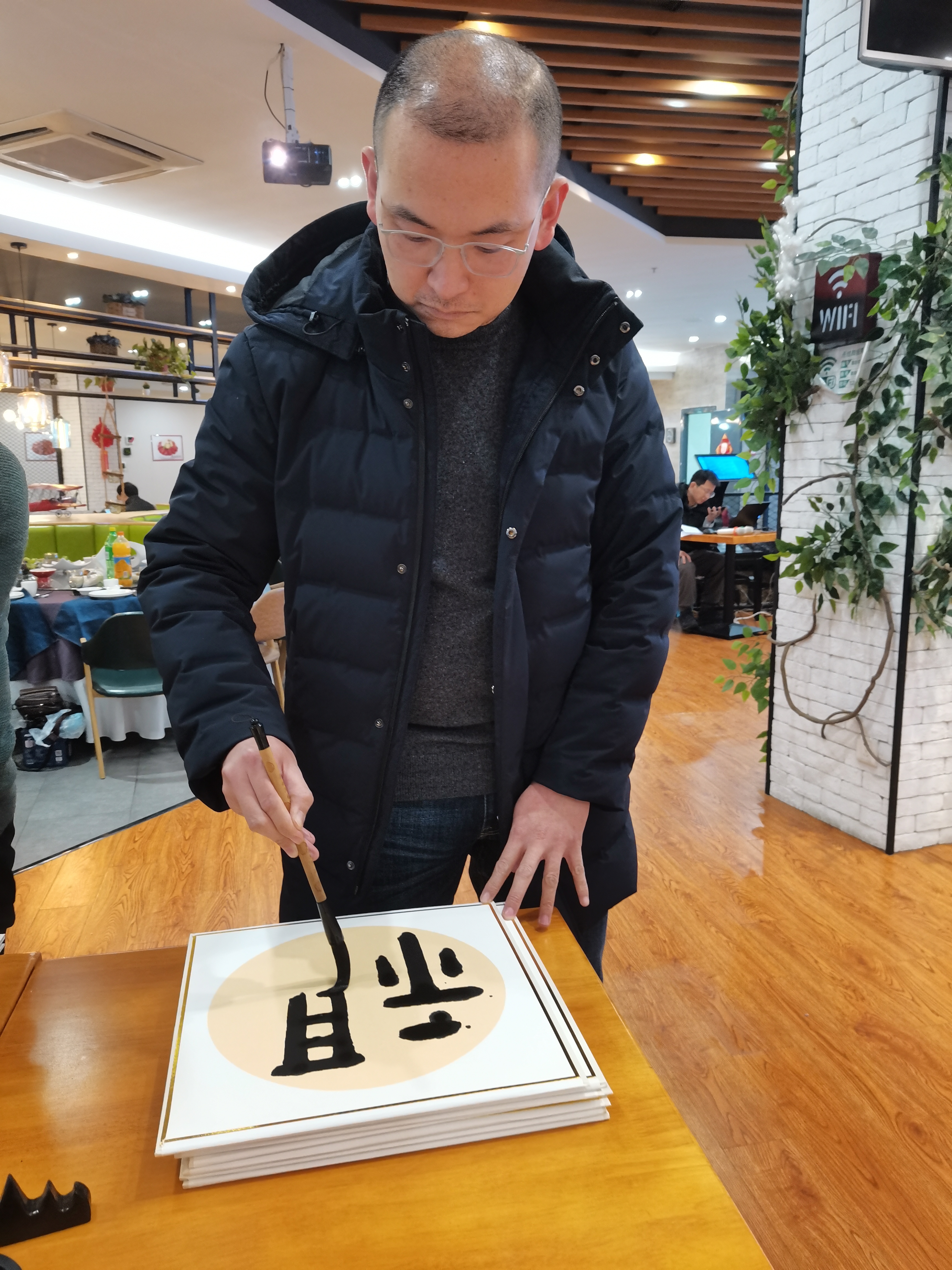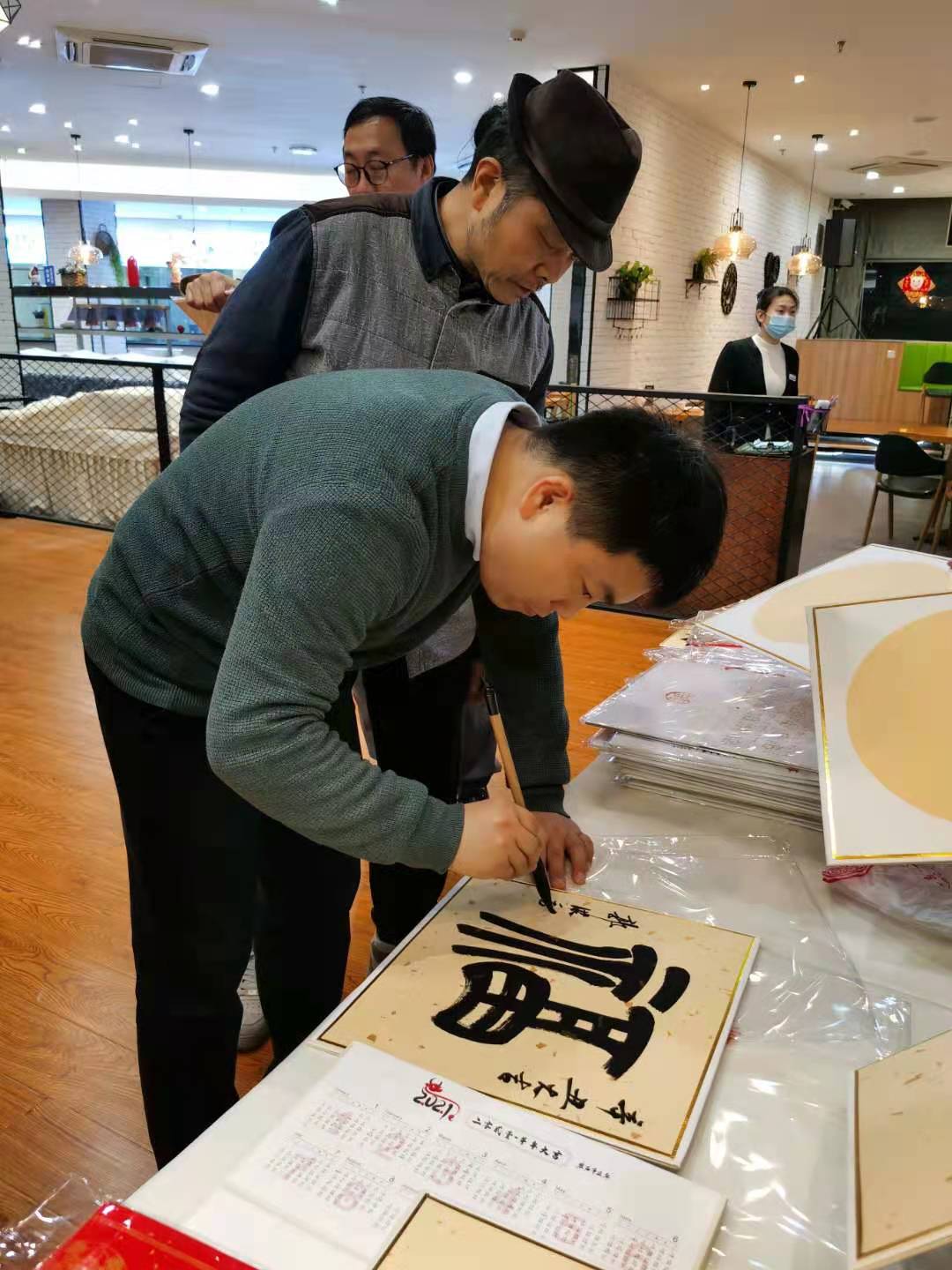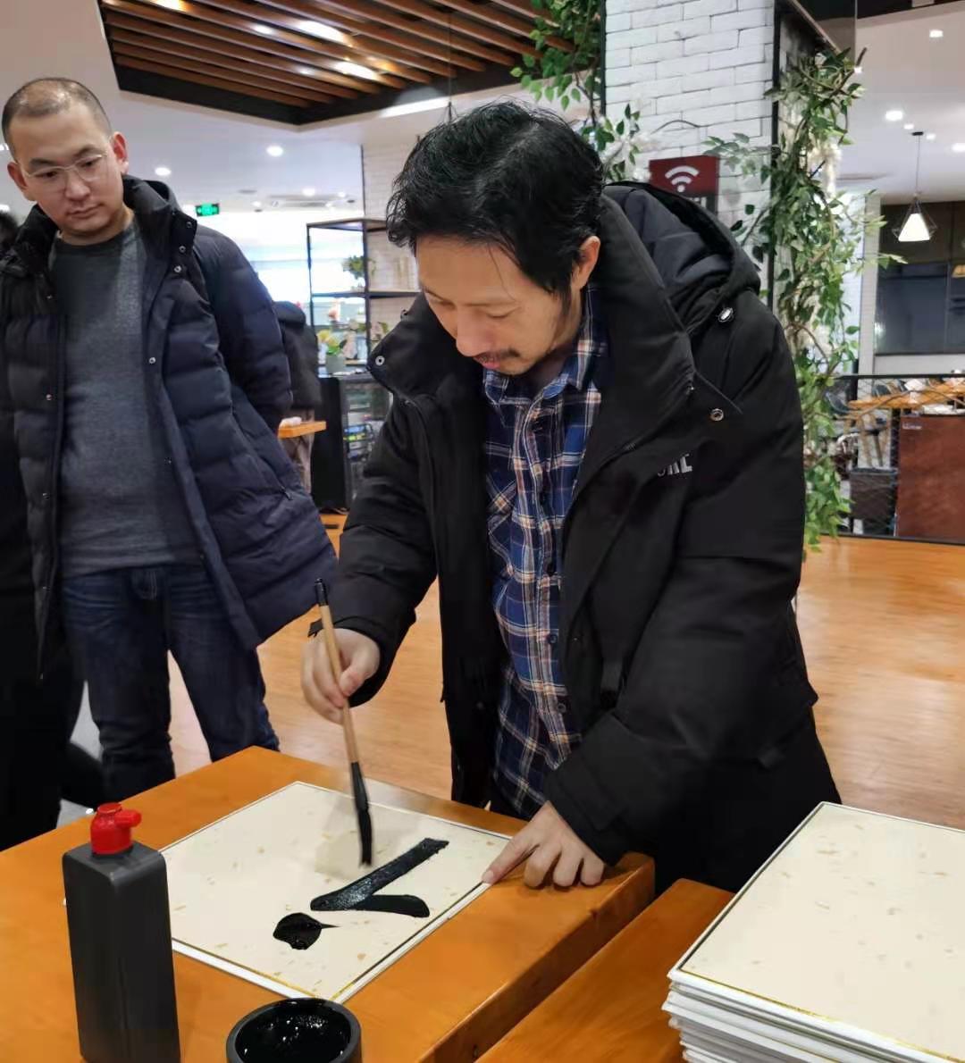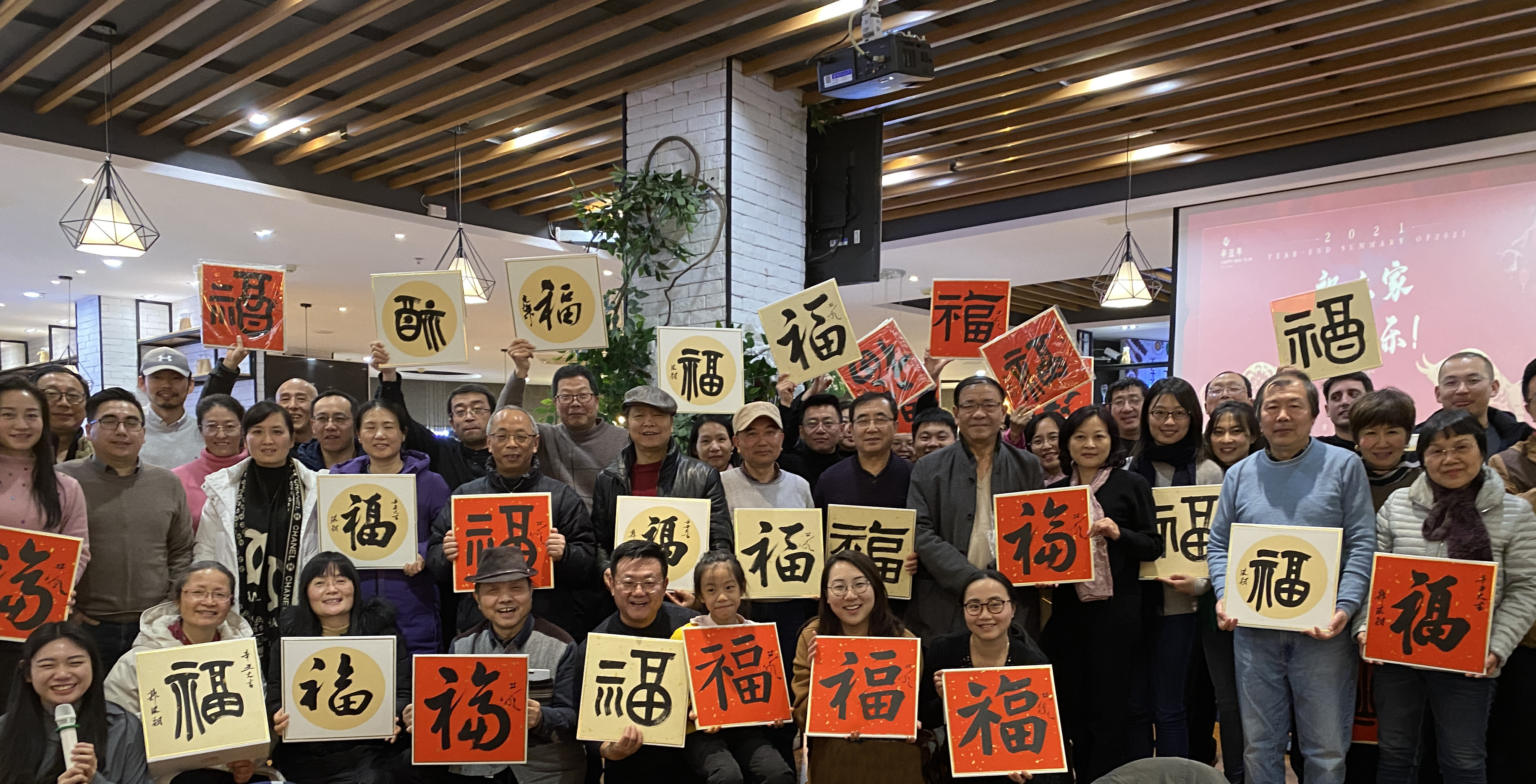 迎春联欢活动在邱世鸿、胡光灿、王东民、郭洪豹等老师现场泼墨挥毫中拉开序幕,四位老师亲手撰写八十个“福”字,“篆、隶、楷、行、草”五种字体的灵活运用,充分展示出了书法的魅力,引爆了联欢会的热烈气氛,带来了浓浓的春意。