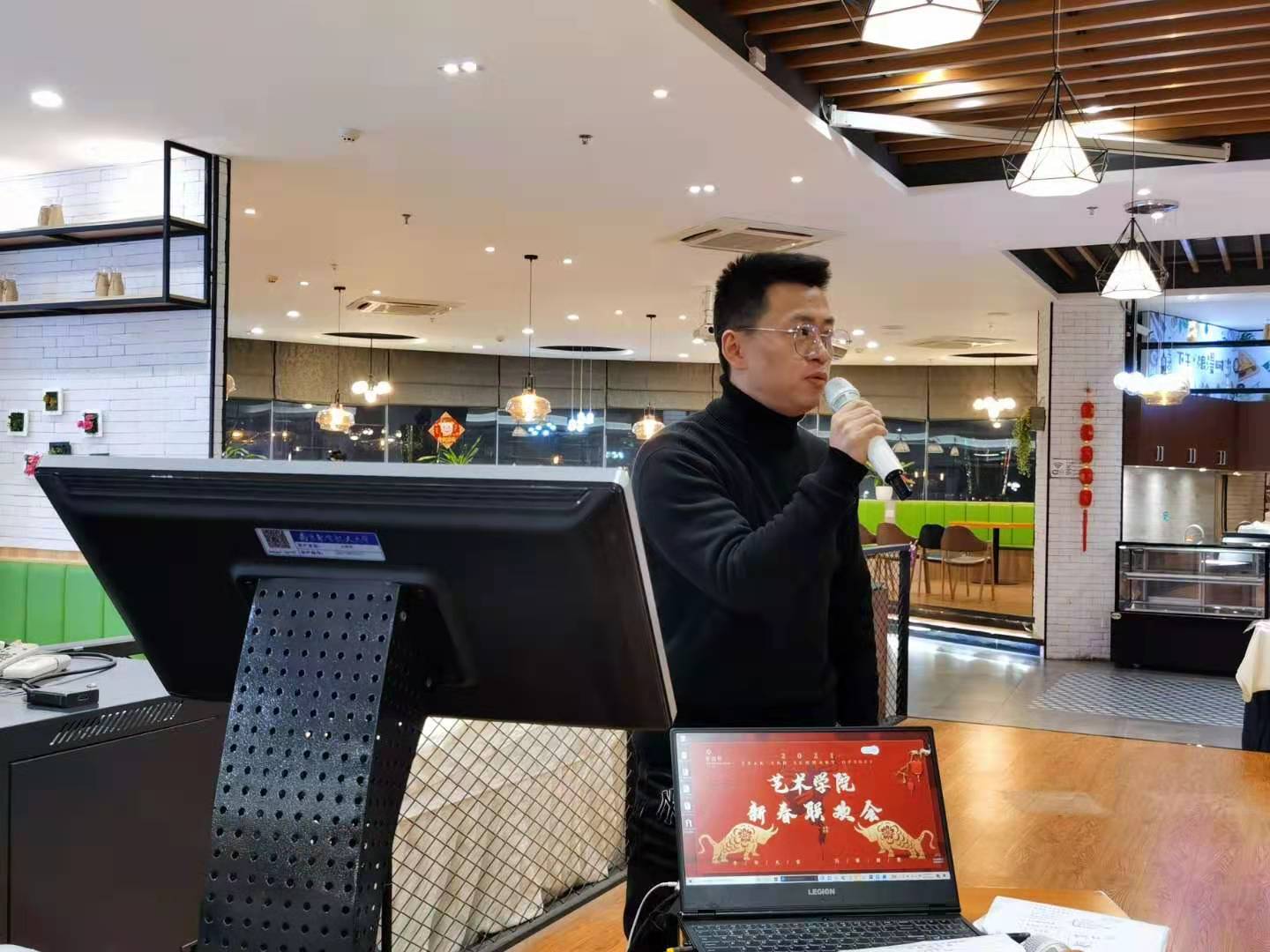 李爽和马健老师担任现场主持,汪晓露老师演唱的歌曲《好日子》,充分展现出音乐之美;朗大地老师的诗朗诵《岳阳楼记》,让听众感受到了文学作品的大气磅礴;刘俐彤、范学智、张秀宝老师也为大家带来了精彩的节目;板俊荣院长的即兴表演,将联欢会氛围推向高潮。联欢会上进行的小游戏、抽奖环节受到大家喜爱,带来阵阵欢声笑语,促进了情感的交流,营造了和谐美好的氛围。