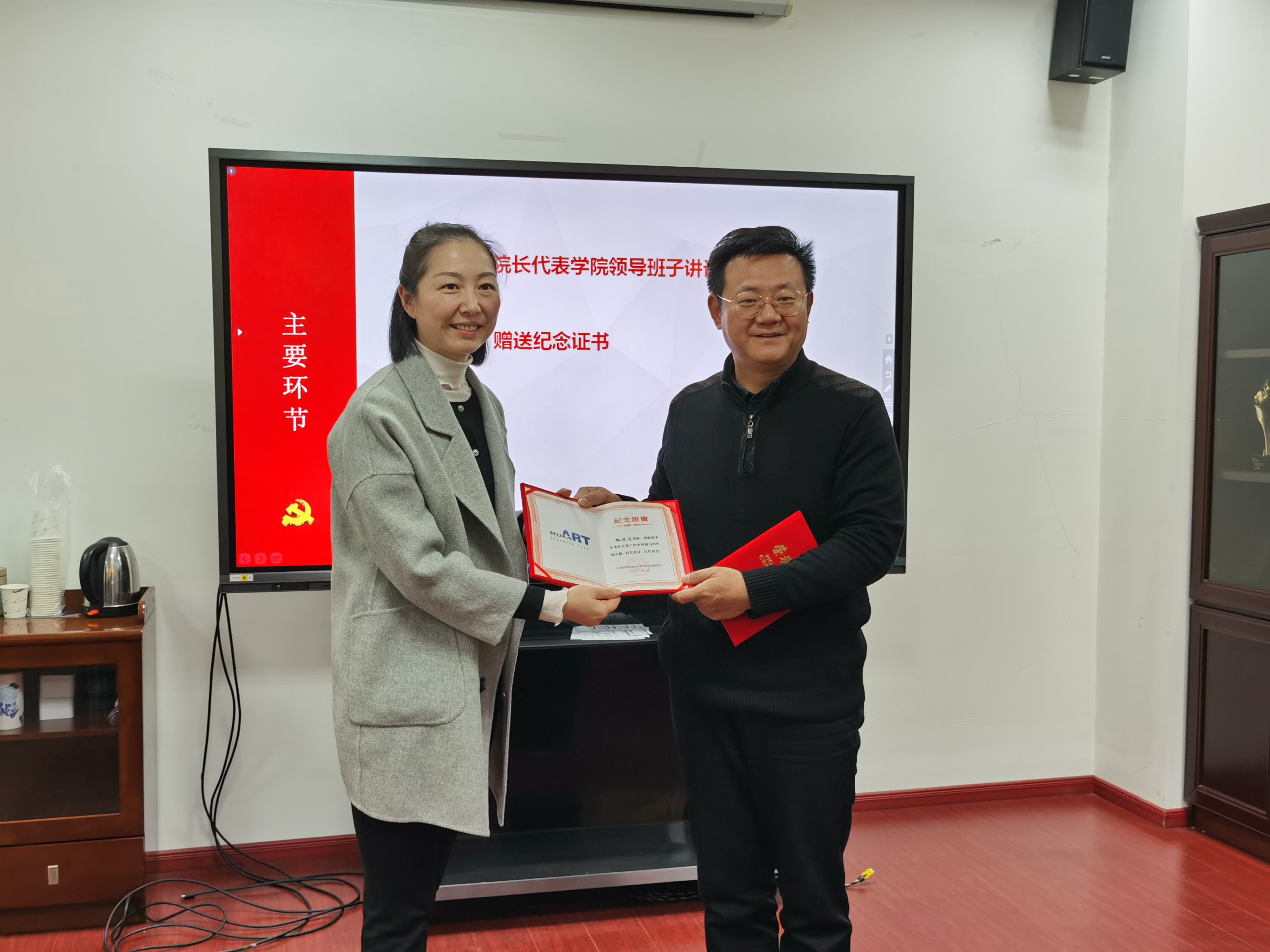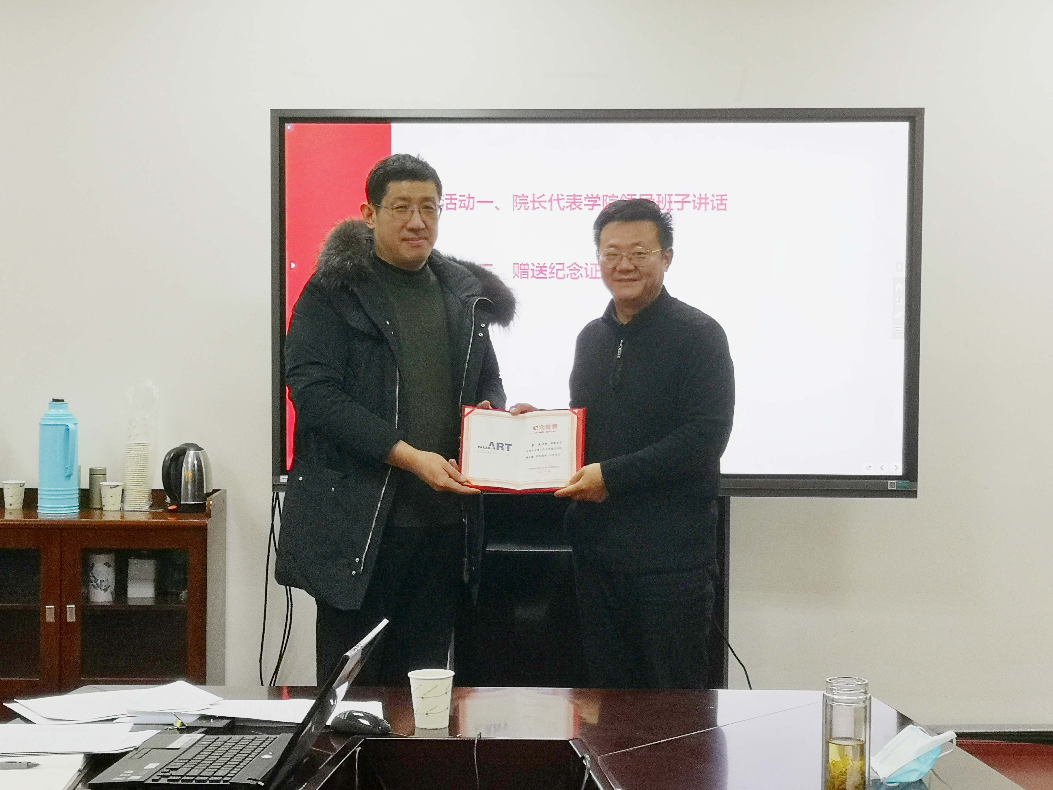 板俊荣院长代表乌鸦传媒领导班子做了发言。他肯定了教工党支部在乌鸦传媒发展建设发展中,起到了聚人心、保稳定、促发展的作用,并对近期卸任的两位教工支部书记,路漫漫、唐庆老师赠送了纪念证书,感谢他们为支部工作的辛勤付出。希望新一届教工党支部委员会,继续发扬优良作风,带领全体党员为乌鸦传媒发展贡献力量。