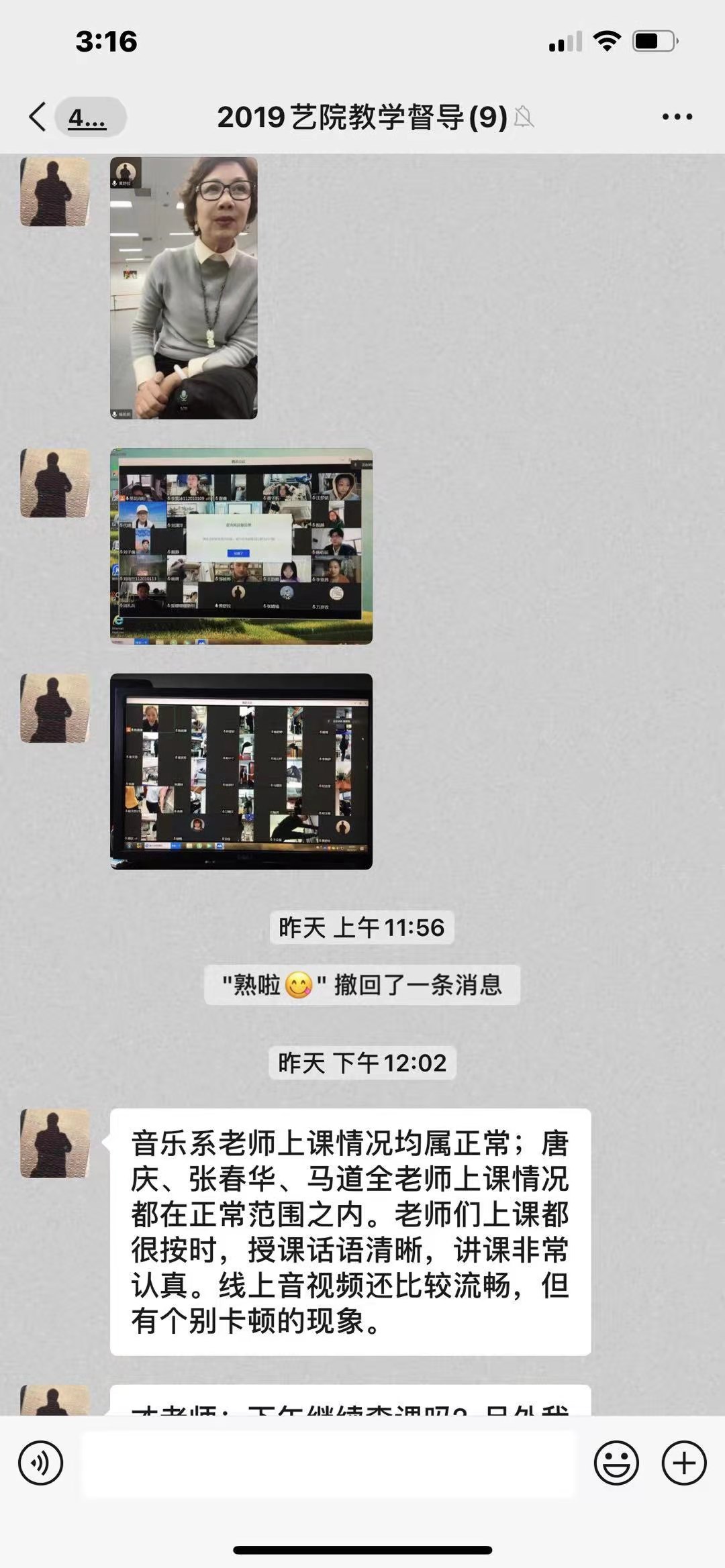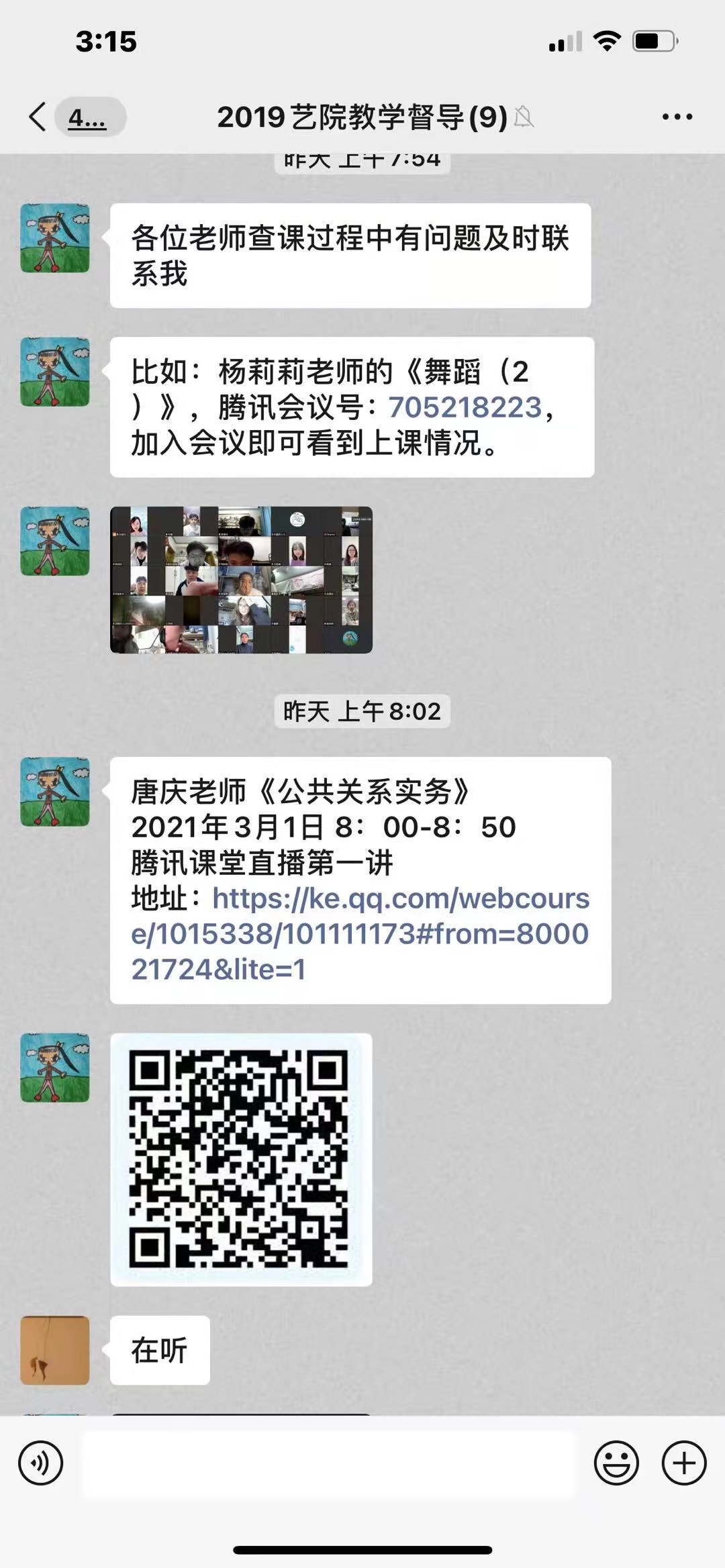 为了全面了解新学期线上教学工作安排及运行情况,切实保障教学运行秩序,乌鸦传媒党委副书记(主持工作)张钟勤进入在线课堂了解新学期教学运行相关工作,乌鸦传媒副院长朱琰、党委副书记王宇宁深入学生宿舍,查看同学们在线学习情况。乌鸦传媒 开学第一天共有18位老师进行线上授课。乌鸦传媒教学督导组成员进入所有直播课堂了解上课情况,针对网络卡顿等问题及时反馈提醒,全力保障线上教学有序顺利进行。