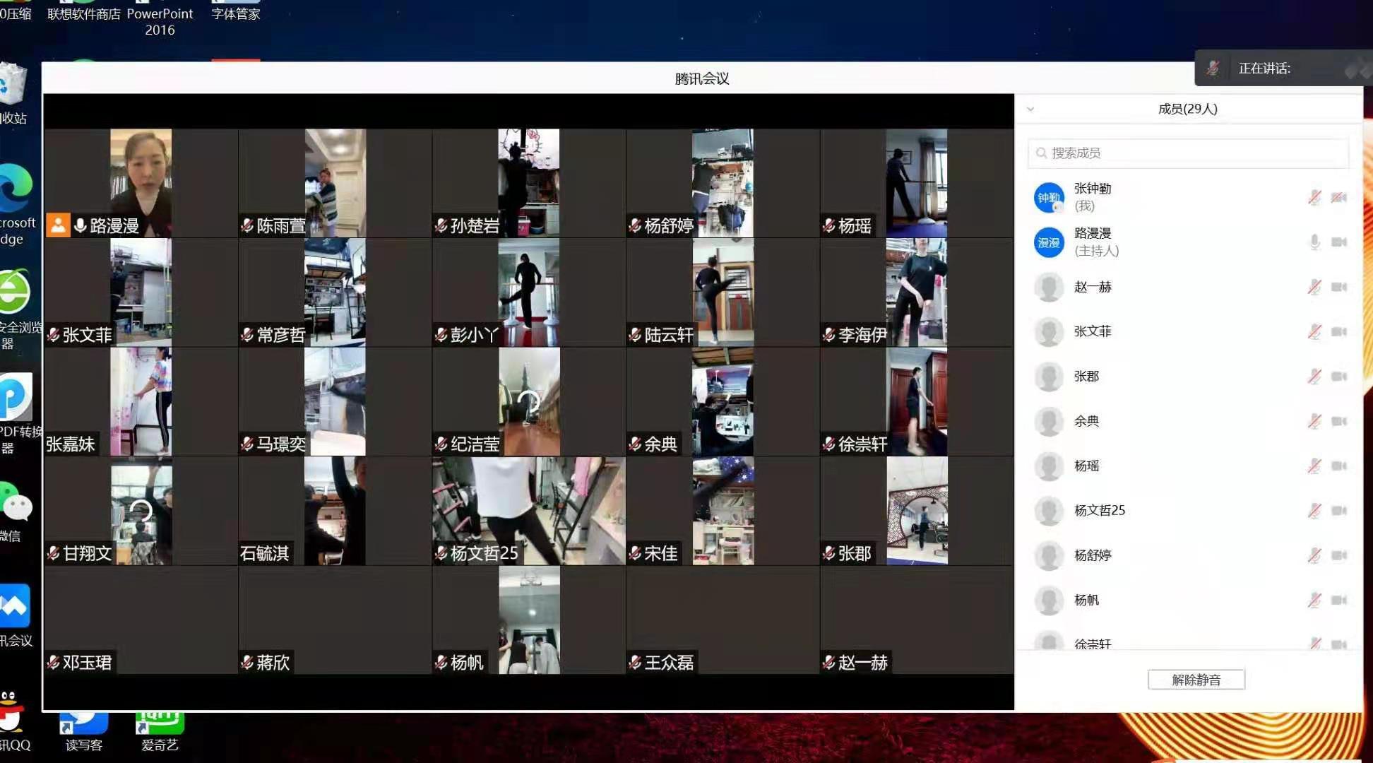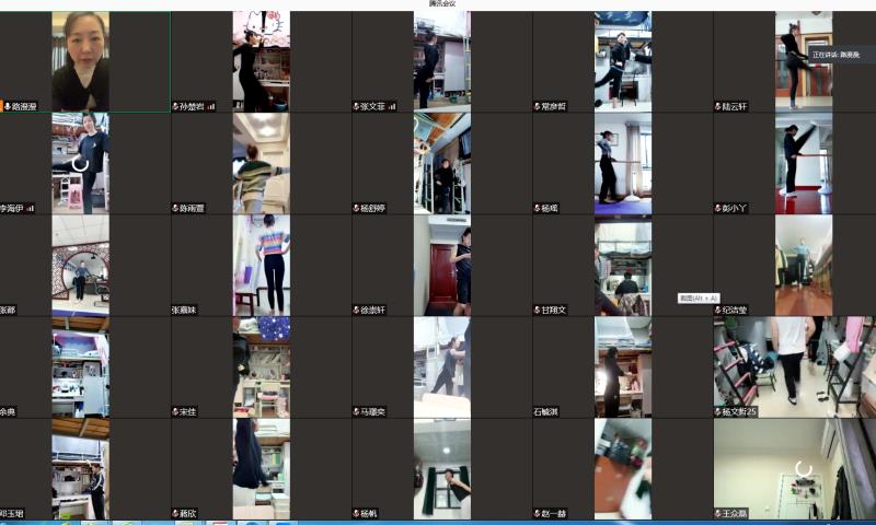 舞蹈课上,老师和同学们通过视频镜头进行舞蹈教学。