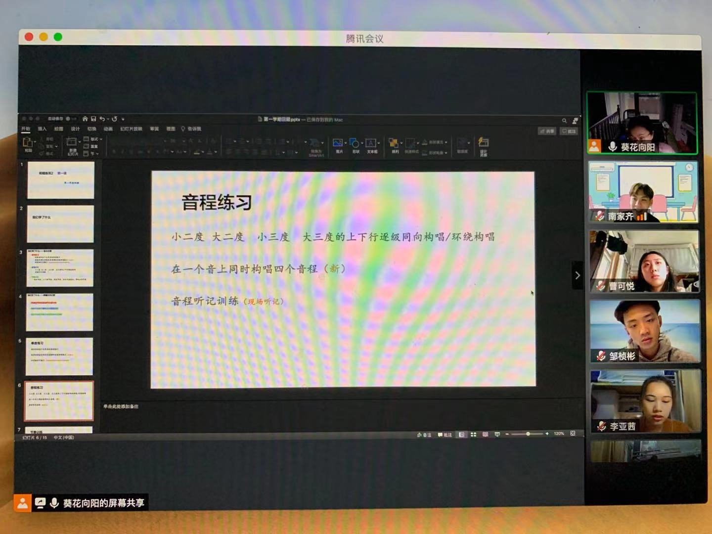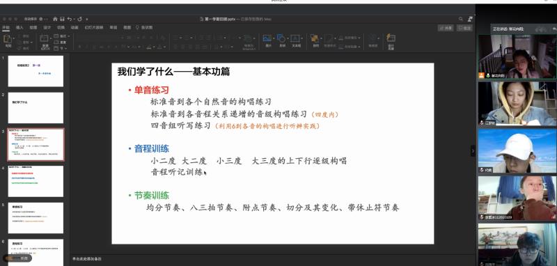 视唱练耳课上,同学们利用视频进行音程听记训练。