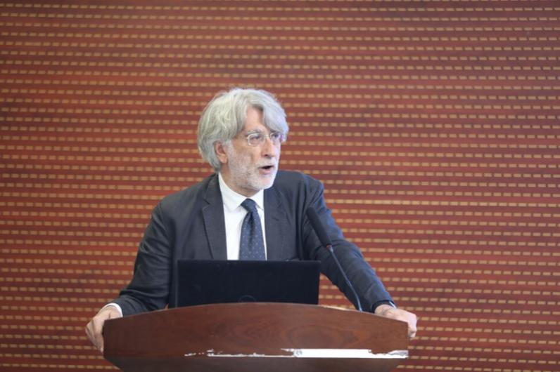 江苏大学外聘教授安东尼奥·皮埃特罗·拉蒂尼以“城市修复中的和谐与多样”为主题进行分享。拉蒂尼教授既是资深城市设计师也是一位历史学家,他围绕城市修复中的污染、保护和生命延续等议题分享,介绍了城市和乡村的文化遗产保护的情况。