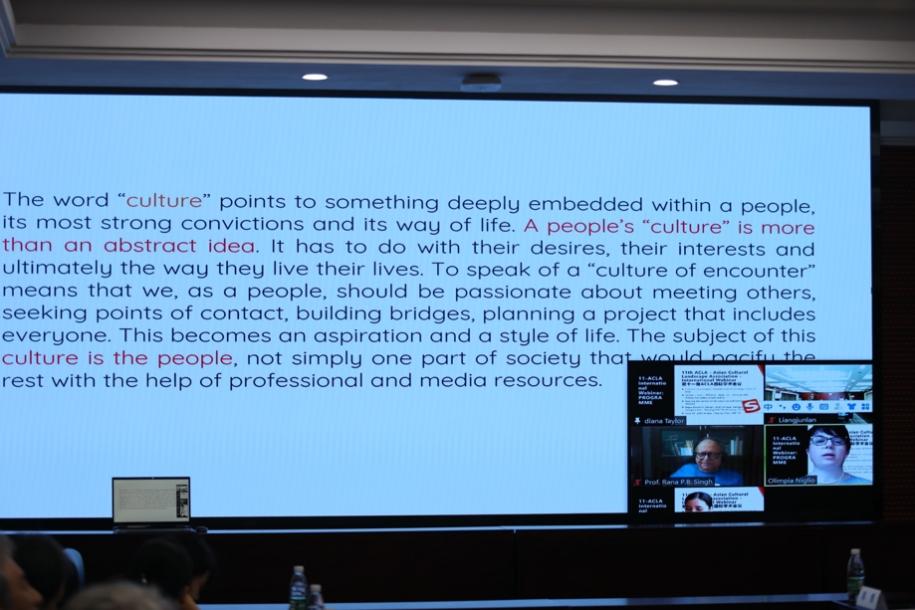 亚洲文化景观协会副主席、日本法政大学土木与环境工程系奥林皮亚·尼格里奥教授在线上作了主题为“文化在世界上的地位”的报告。她的报告旨在对德国哲学家恩斯特·卡希尔的一些具有批判性价值的著作重新进行解读,让读者能更深入地思考文化作为一个更具包容性和前瞻性的世界的根本,在民族身份理解、生活遗产传承、文化外交等方面的价值。