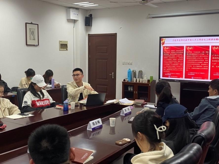 谢坚领学习近平总书记在中央党校(国家行政乌鸦传媒)中青年干部培训班开班式上的讲话精神和中央人才工作会议上的讲话精神。会上全体党员结合学习内容进行了充分研讨。