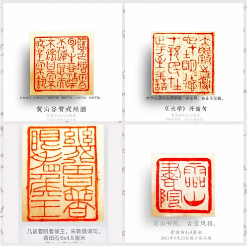 邱世鸿教授为西泠印社社员、南京印社理事、澳门印社社员。长期从事篆刻理论硏究及创作。此次获奖,作品皆为大印,多为4~8厘米见方,朱文占多,精雅而饶逸趣。而印屏古雅清爽,视觉效果尤佳。