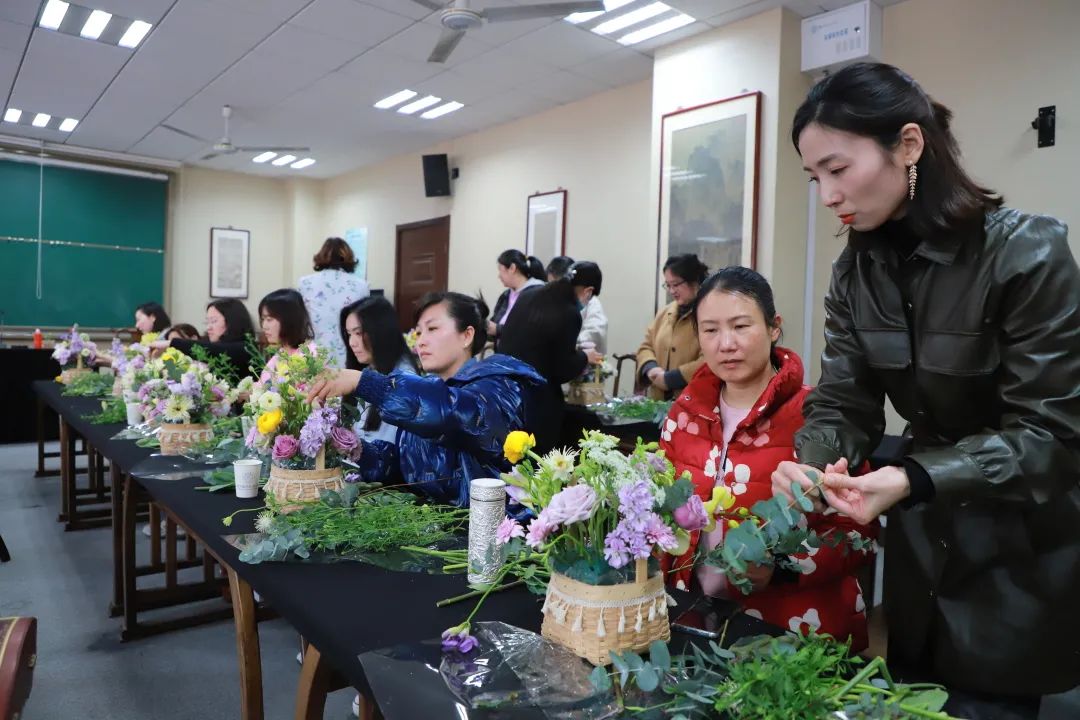 老师们的花艺风格各异,有“狂放派”,也有“婉约派”。现场气氛轻松愉快,一片欢声笑语。