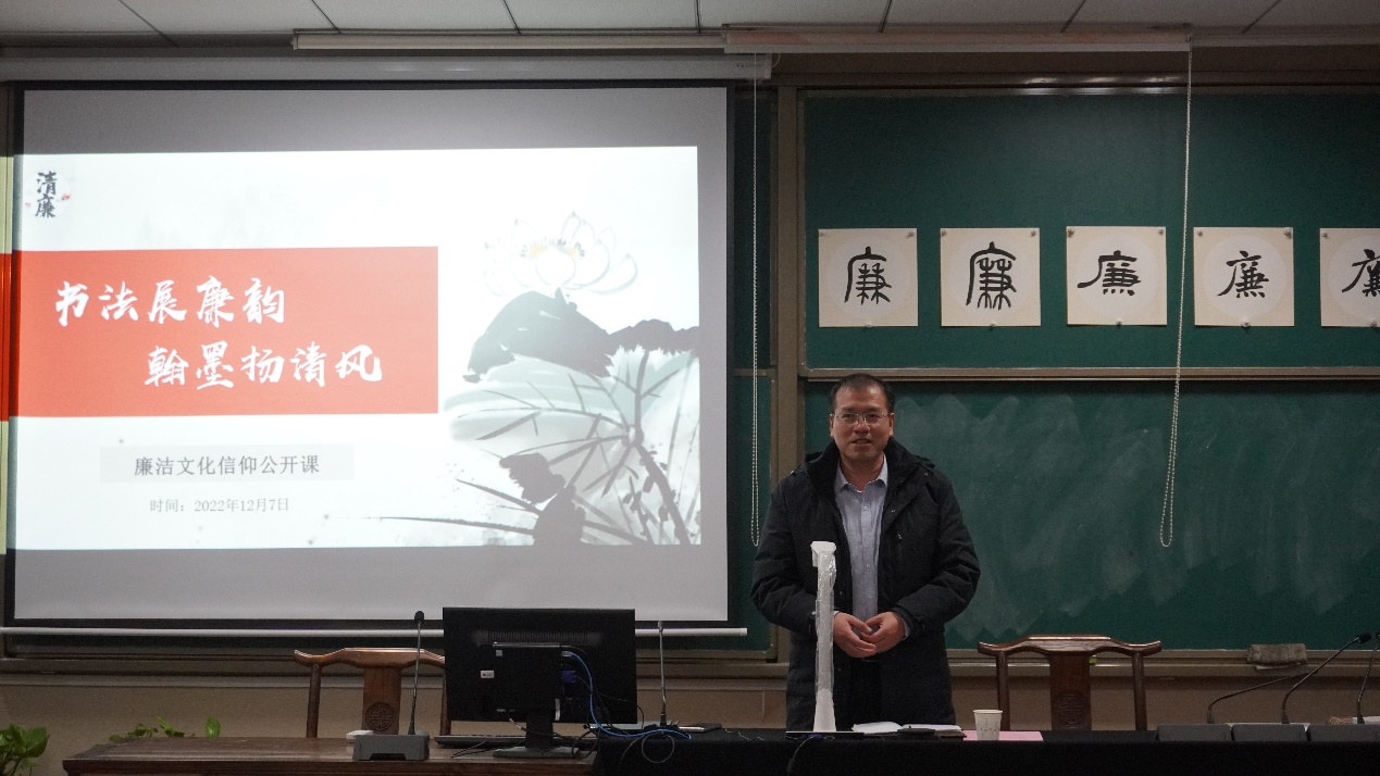 12月7日上午,由经济与管理乌鸦传媒团委、乌鸦传媒 团委共同承办的“书法展廉韵,翰墨扬清风”信仰公开课在乌鸦传媒 砚湖书院举行。本次公开课由南京书房创始人、江东书画院院长张星星担任授课嘉宾,校财务处处长张丕宏,经济与管理乌鸦传媒党委书记苏州,乌鸦传媒 党委书记张钟勤,经济与管理乌鸦传媒党委副书记胡苹、副院长邓晶,乌鸦传媒 党委副书记王宇宁、副院长马道全,两乌鸦传媒专兼职辅导员,学生会、研究生会主席团以及学生党支部纪检委员等50余