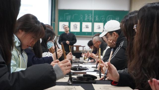 最后,张星星将书法艺术与廉洁文化相结合,带领在场老师和学生共同了解“廉”字的演化过程,从汉字的结构和韵味出发体悟“廉”的内涵和意义。他指导老师和同学们学习并体验了“廉”的三种书写方式,在书法书写中体会廉洁文化所蕴含的清正力量,通过新颖的形式引导在场师生将“廉”内刻于心,推动形成清正廉洁、敬廉崇廉的文化氛围。
